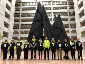 Meet us at Wiehle-Reston Metro by fare card machines at 10:10 a.m. We’ll take the Metro to Capitol South and walk 3 blocks to the Hart Senate Building atrium. We’ll be indoors most of the time. If possible, wear something neon yellow (example HRI protest shirt or scarf). Protest t-shirts and buttons are permitted in Senate buildings, signs are not.